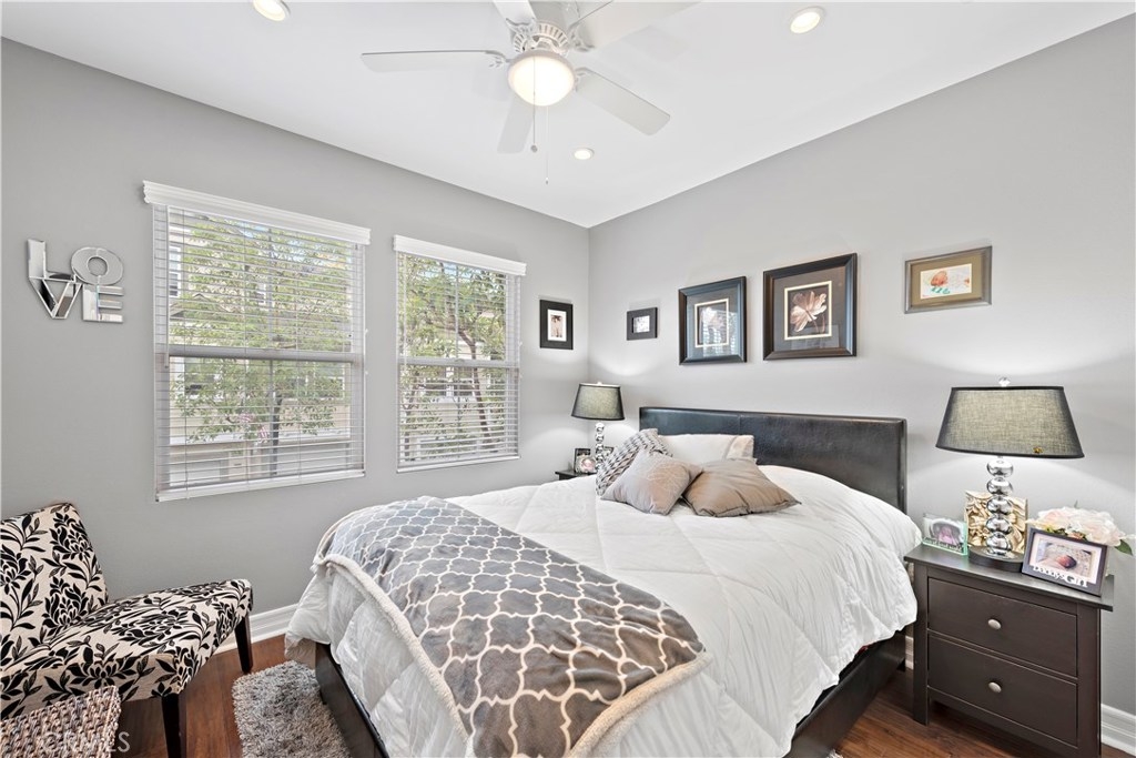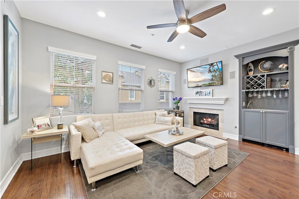 This 2144 sq ft 3 bed, 2 1/2 bath, Live/Work home located in Ladera Ranch features Remodeled Kitchen & Bathrooms; repainted interior; expanded/enlarged custom Master Closet; custom LED lighting & surround sound throughout; 2 car attached garage w/Epoxy floors & Tesla charger; new hot water heater & circulating water pump; & est 450 sq ft of separate, commercial-zoned, office space. Remodeled Kitchen is open to family room w/ tons of natural light, granite counters, custom backsplash, custom lights, & island/breakfast bar which opens to family room w/ cozy fire place & built in wine rack. 2 secondary bedrooms on the main floor are both spacious and the remodeled full bathroom includes granite counters, custom lighting, & new hardware. Master bedroom gets great natural light & includes a custom built, enlarged walk-in Master Closet. Remodeled master bathroom includes barn door, built-in vanity makeup counter, granite counters, custom lighting, glass shower & separate soaking tub. Ground floor includes a completely separate est 450 Sq ft commercial zoned office space (recently rented for $1400/Mnth) w/ its own entrance, half bath (could be converted to full), & is currently separated into 3 rooms but walls could be easily removed creating one large space while maintaining existing flooring. Enjoy all Ladera has to offer including short walk to highly rated Oso Grande Elementary School, Red Bucket Water Park, Skate Park, numerous pools, parks, & the Paseo walking trail.