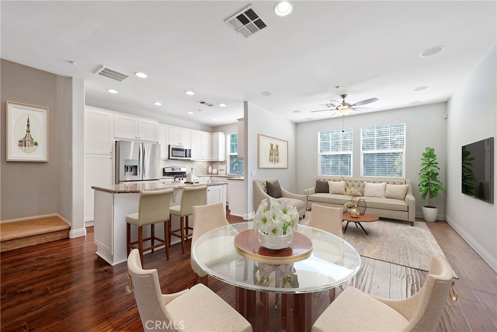 Best LOCATION in the tract, this 3 Bedroom/2.5 bath 1700 sq. ft. condo is situated across the street from one of the best parks in Ladera Ranch. Also, just steps to the community pool and a short walk to the water park and Oso Grande Elementary. Former model has been re-piped with PEX and just updated with new paint throughout and new carpet. Living room features high ceilings, fireplace and wood grain laminate flooring. Light and bright kitchen boasts white cabinetry, granite countertops, custom stone backsplash, newer GE Profile appliances, and island with seating. Home also features individual laundry room, 6" baseboards, ceiling fans, and 2 car attached garage with large storage area as a bonus. Master suite features ceiling fan, master bathroom with granite countertops, upgraded white cabinetry, dual sinks and walk-in closet with built-ins. Enjoy the Ladera Ranch lifestyle from the front porch of this amazing home.