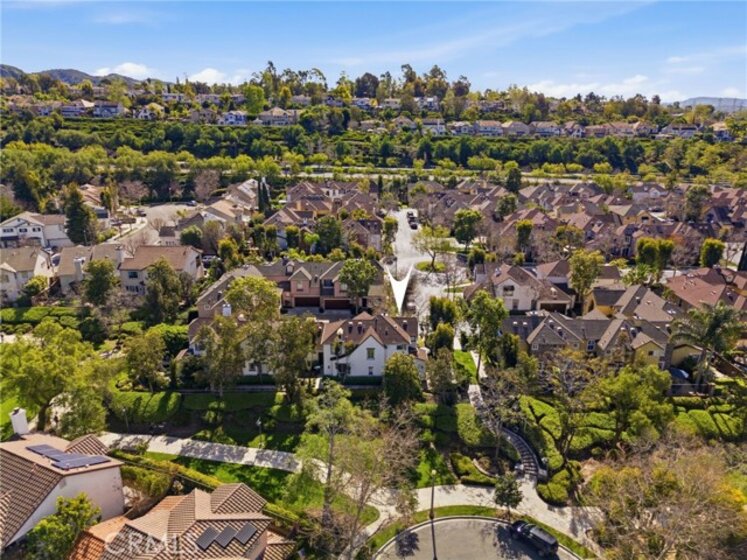 Tucked into a quiet cul-de-sac in the heart of Sycamore Grove, this beautifully remodeled 4-bedroom residence offers what is arguably the most desirable location and floor plan in the entire community. Positioned as a premier end unit, the home lives like a detached property -- attached only at the neighboring garage -- with added privacy, extra green space at the front, and direct access to the scenic walking path just beyond the backyard. Steps away from the park and surrounded by lush landscaping, the setting is both peaceful and idyllic. Offering over 1,800 square feet, this is the largest and most functional layout in Sycamore Grove, featuring a highly sought-after downstairs bedroom and full bath with shower -- ideal for guests, multi-generational living, or a private office. The remodeled kitchen showcases quartz countertops, a center island, designer backsplash, and stainless steel appliances, opening seamlessly to the family room and additional living/dining space. Upstairs, spacious secondary bedrooms, a full bath, and a generous primary suite with dual vanities, soaking tub, separate shower, and walk-in closet provide comfort and flexibility for modern living. Additional features include a full home repipe completed in 2023, central air conditioning, and EV charging in the attached two-car garage. With its rare end-unit placement, expansive feel, and exceptional privacy, this home truly stands apart. Residents of Sycamore Grove enjoy access to a beautiful private pool and nearby parks, all within the vibrant, award-winning community of Ladera Ranch, just moments from shopping, dining, trails, and everyday conveniences.