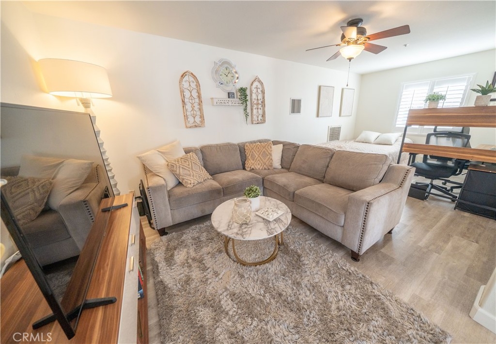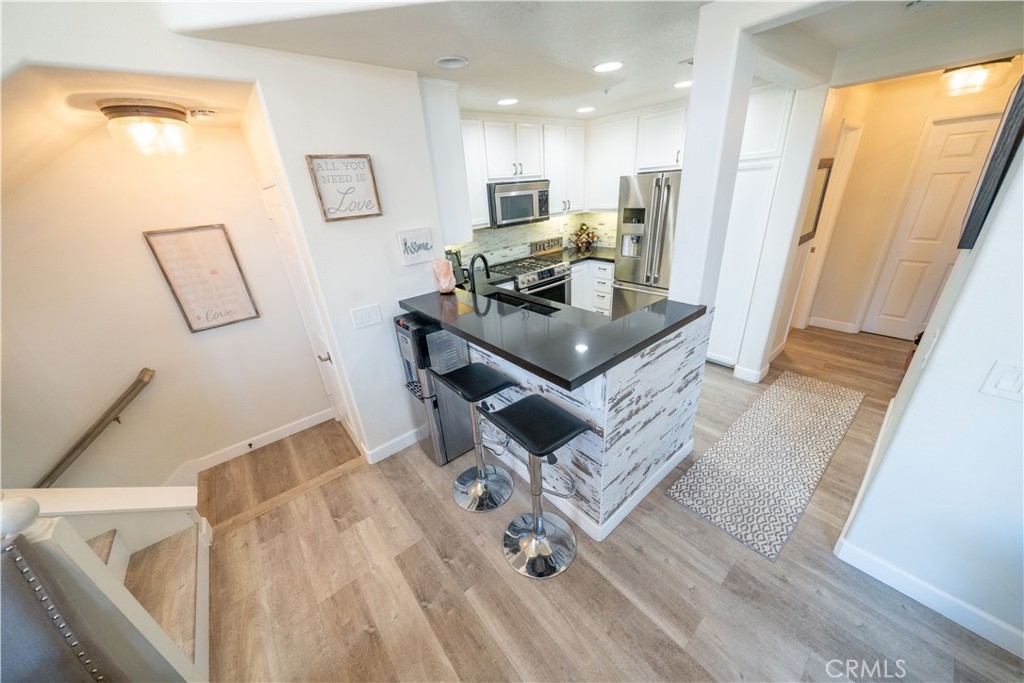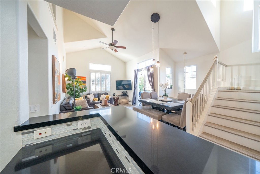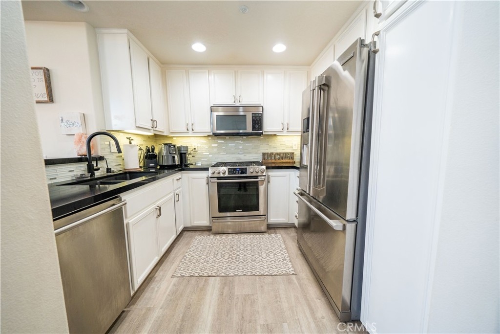 Welcome home to this beautifully appointed end-unit property in Ladera Ranch's coveted Chambray community, offering a bright, airy floor plan highlighted by soaring two-story ceilings and abundant natural light. This lovely home features two spacious bedrooms and two full bathrooms, along with a generous loft that can easily be converted into a third bedroom, home office, or private retreat. The upgraded kitchen showcases new fixtures, modern appliances, a stylish backsplash, and refreshed countertops, all complemented by a convenient breakfast bar with seating. The spacious dining area flows effortlessly into the family room, where sliding doors open to a private balcony - an ideal spot to unwind. New wood-laminate flooring carries throughout the home, enhanced by upgraded baseboards and fresh paint for a clean, cohesive look. The generous primary suite offers a serene retreat with its own well-appointed bathroom and walk-in closet. A comfortable secondary bedroom is perfect for family or guests, while the upstairs loft provides a versatile space for added privacy, a home office, or a game room. The attached garage includes a built-in water softener and convenient in-unit newer washer and dryer. In addition to the private one-car garage, the home also comes with an assigned parking space located directly in front of the unit - space #9. Beyond its close proximity to top-rated schools, shopping, entertainment, and convenient freeway access, this home is part of the vibrant Ladera Life community, offering resort-style amenities including 13 sparkling pools, a water park, disc golf, tennis and pickleball courts, a skate park, and multiple splash pads. Don’t miss the chance to tour this beautiful home, book your appointment today!