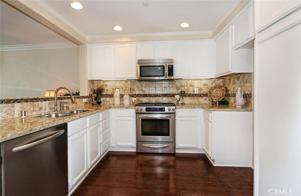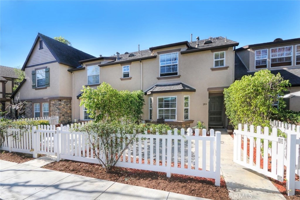 Welcome home to Three Vines, a charming community in Ladera Ranch. Have you always dreamed of having the house with the white picket fence? Well, here it is. You will enjoy the lovely tree-lined patio courtyard that is completely enclosed & perfect for dining al fresco or kids at play. Once inside, this home offers a spacious & well thought out floor plan. Sure to please the fussiest buyer, this home is light and bright with 9' ceilings & crown molding. The great room boasts a cozy fireplace, wood laminate flooring & is open to the highly upgraded kitchen with granite counters tumbled travertine backsplash & stainless appliances, new dishwasher. Off the kitchen is a nice size dining area. You have direct access to the oversized two car garage. Upstairs you will find 2 spacious secondary bedrooms with shared bathroom. You will love the oversized master bedroom + ceiling fan. Master bath with dual sinks, oversized soaking tub, & large walk-in closet. $4,000 whole house water filtration system. This quaint English Tudor cottage is nestled in a nice quiet location, includes COX internet & is in close proximity to the sought after Ladera Ranch community. HOA includes a skate park, water park, numerous pools, parks and clubhouses. Plus highly desirable Blue Ribbon Schools close by. Conveniently located close to the 5 freeway, shops & restaurants. Come find out why Ladera Ranch won the BEST planned community in the nation. Live the Ladera Ranch Lifestyle.
