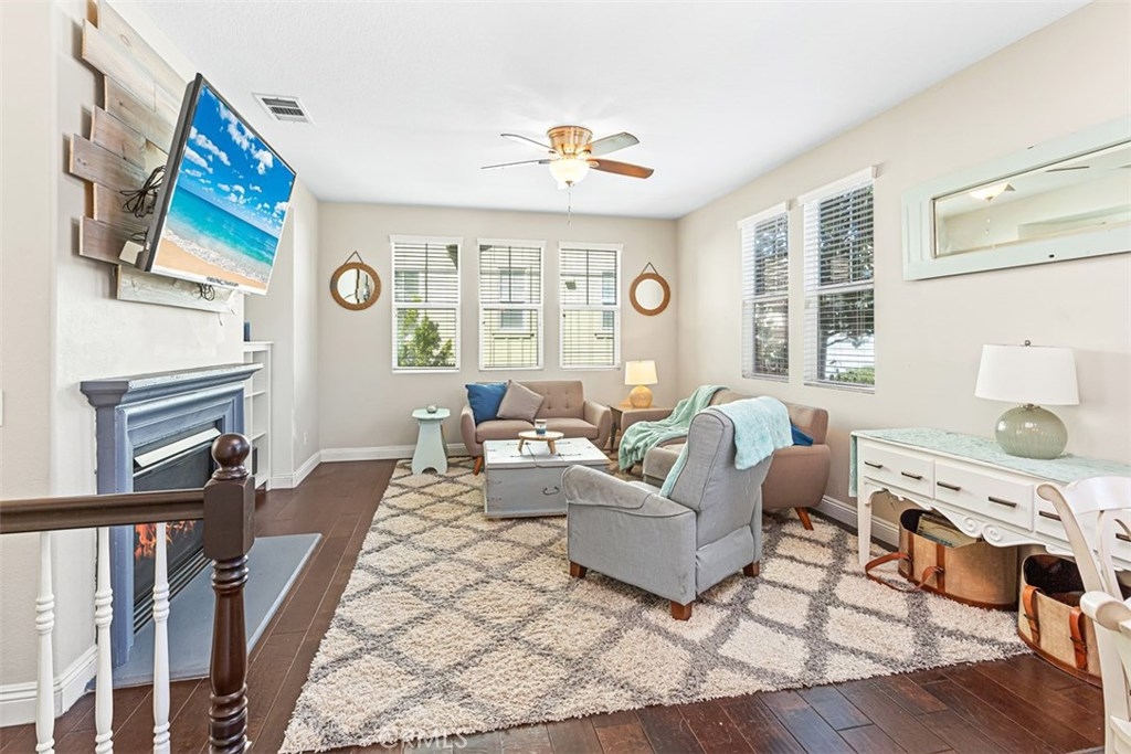 Welcome home to the beautiful Tarleton Community. Ideally located in the heart of Ladera Ranch. Corner lot with private yard, this fully detached, three bedroom, three and one half baths, does not disappoint. Featuring ground floor bedroom and full bathroom, including a private entrance. Ground floor laundry with built in cabinetry for your convenience. Two car attached garage with storage. The main floor offers a light and bright living room with cozy fireplace, dining room, and hardwood floors throughout. The kitchen boasts ample storage space, stainless steel appliances, double oven, and built in microwave. Kitchen opens up to a breakfast nook. Perfect for enjoying your morning coffee. The third level hosts the master suite and is complete with a walk in closet. The master bathroom includes dual sinks, and bathtub. The third bedroom also has its own bathroom with bathtub. The third level includes an office niche. Upgrades include owned solar panels, ceiling fans, upgraded light fixtures, baseboards, paint and blinds throughout. French doors lead out to your private yard with vinyl fence and is perfect for relaxing or entertaining. Ladera Ranch amenities include high speed internet, award winning schools, pools, clubhouses, tennis, water parks, skate park, dog park, community events and miles of biking and hiking trails.