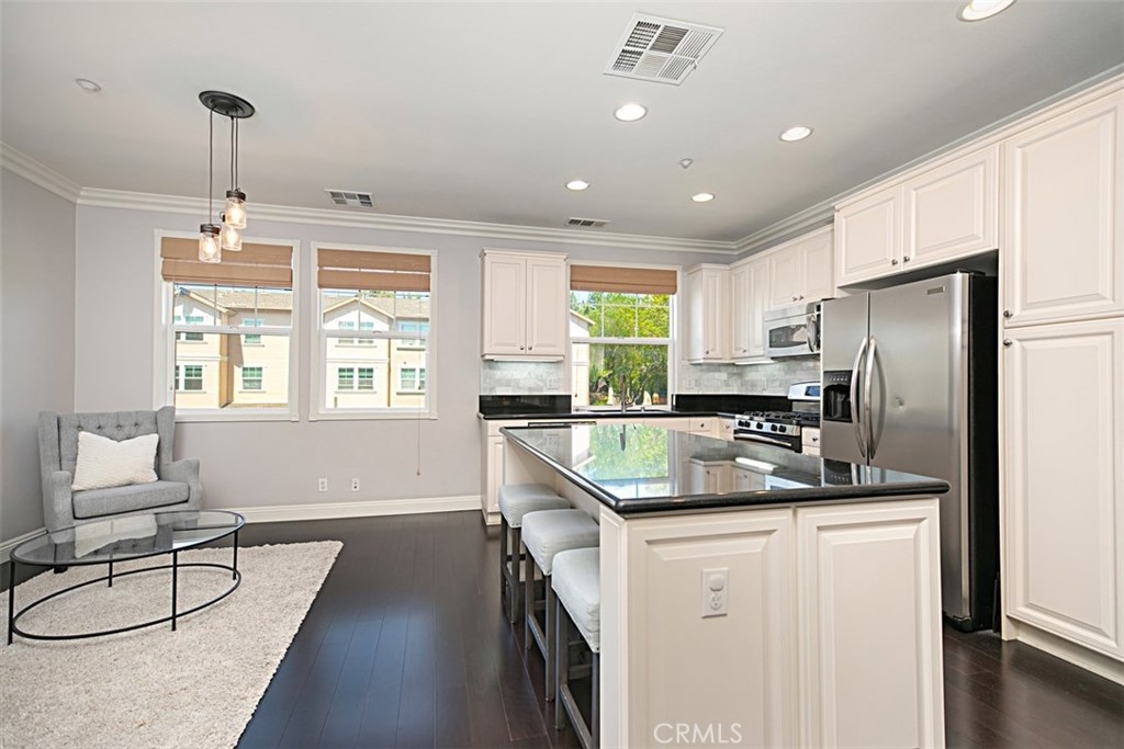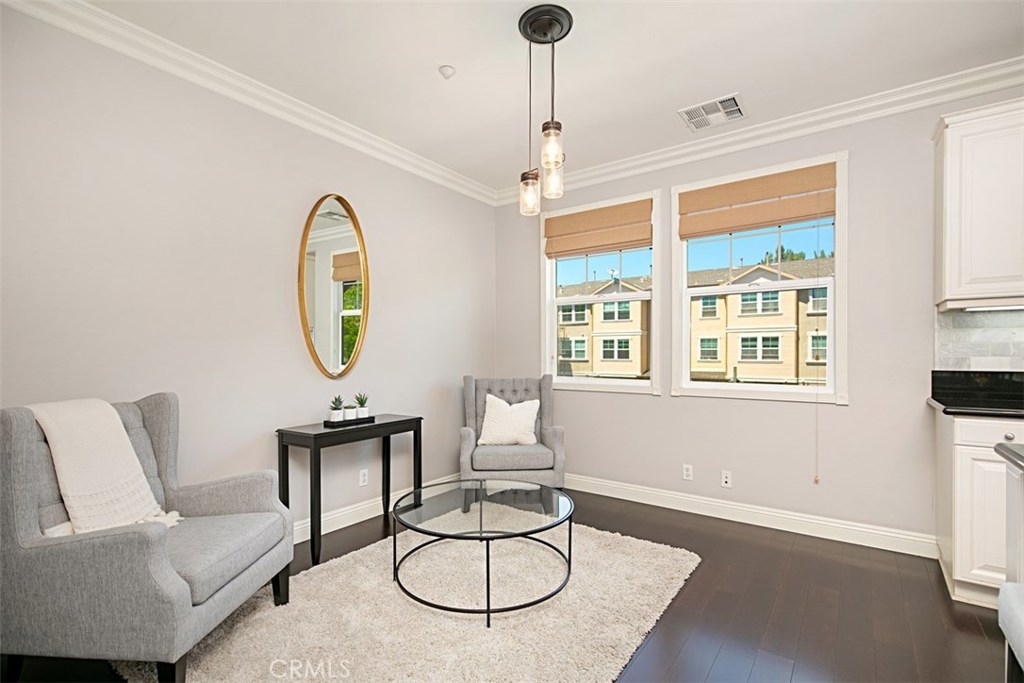 Move-in ready. Great Location. Dramatic 2-bedroom, Plan B, Briar Rose Townhome, each bedroom with in-suite bath. Soaring ceilings accentuated by crown molding highlight the open floor plan. Laminate wood flooring runs throughout main living space, enhanced with large format-base board. Upstairs bedrooms with spacious loft are upgraded with lush carpet and tile in baths. Master has large walk-in closet, dual vanity, soaking tub and large shower. Home is additionally upgraded with contemporary paint, Pex pipe, Nortiz tankless water heater, Lift Master garage door opener, WiFi capable with quiet belt system opener. Unbelievable amounts of easy-access storage in the finished garage. Charming craftsman inspired design allows for extended exterior living space on the inviting porch. This home is move-in ready.
