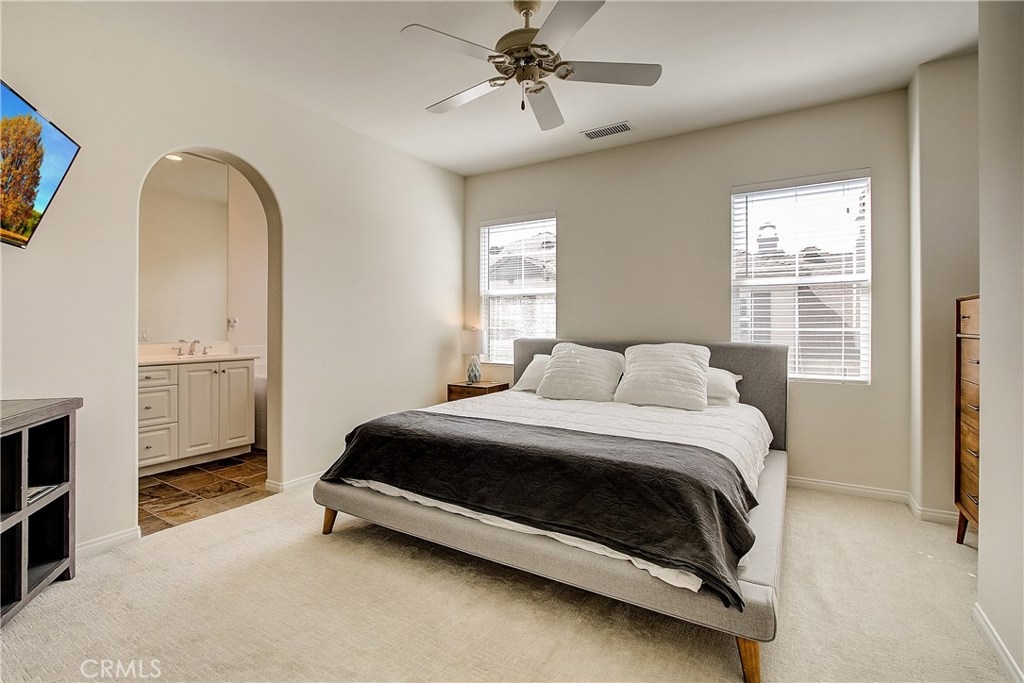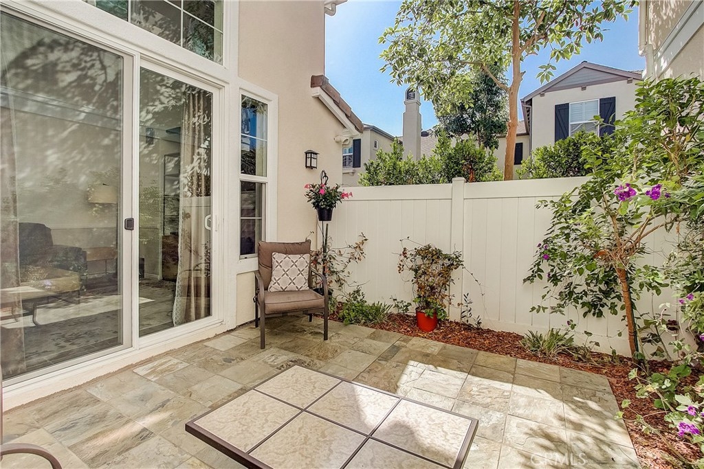 This upgraded townhome located in Atherton Glen in Ladera Ranch is ready for its new owners! Slate flooring, newer paint and vaulted ceilings compliment the bright and open floor plan. The kitchen features fresh white cabinets, large view window, and breakfast bar w seating, and separate eating area. The living room flows seamlessly from the kitchen and features light-catching windows and cozy stone fireplace. The master suite features plush carpet, ceiling fan, ample closet space and an en-suite bathroom with dual sinks and soaking tub. The secondary bedroom is a generous size with private balcony and en-suite bathroom. Convenient indoor laundry room and two car attached garage makes for easy living. Relax on the private patio with room for entertaining. In addition this home has a new water heater and PEX Piping. Enjoy the resort-like amenities of Ladera Ranch which includes high-speed internet, 15 pools, splash parks, a skate park, community garden, clubhouses and hiking and biking trails. Also enjoy concerts in the park, parades, 4th of July fireworks, a spring fair, family campout, holiday tree lightings, and a secure dog park.