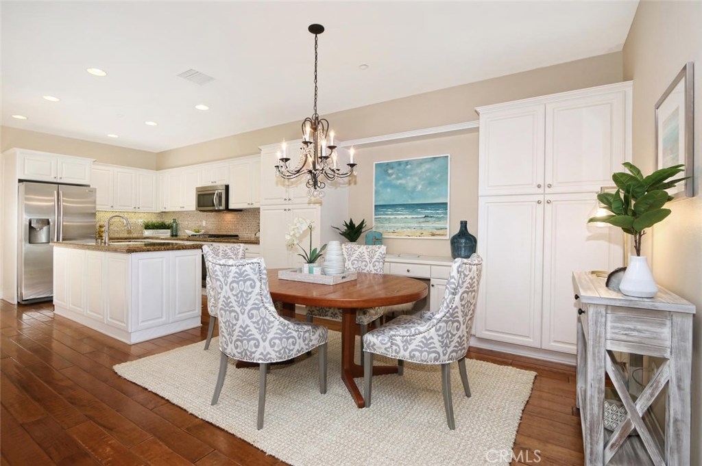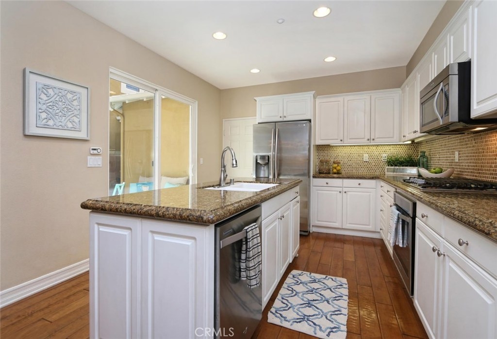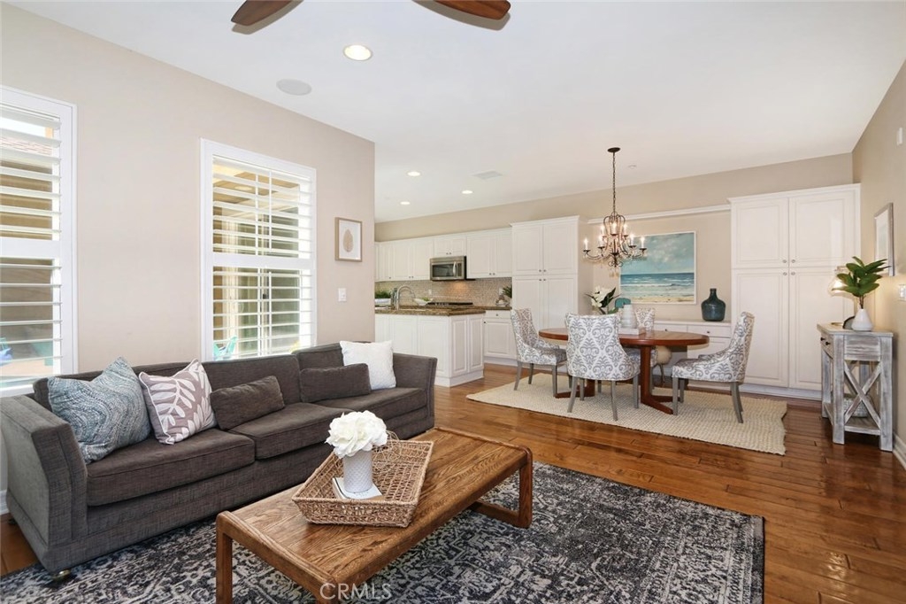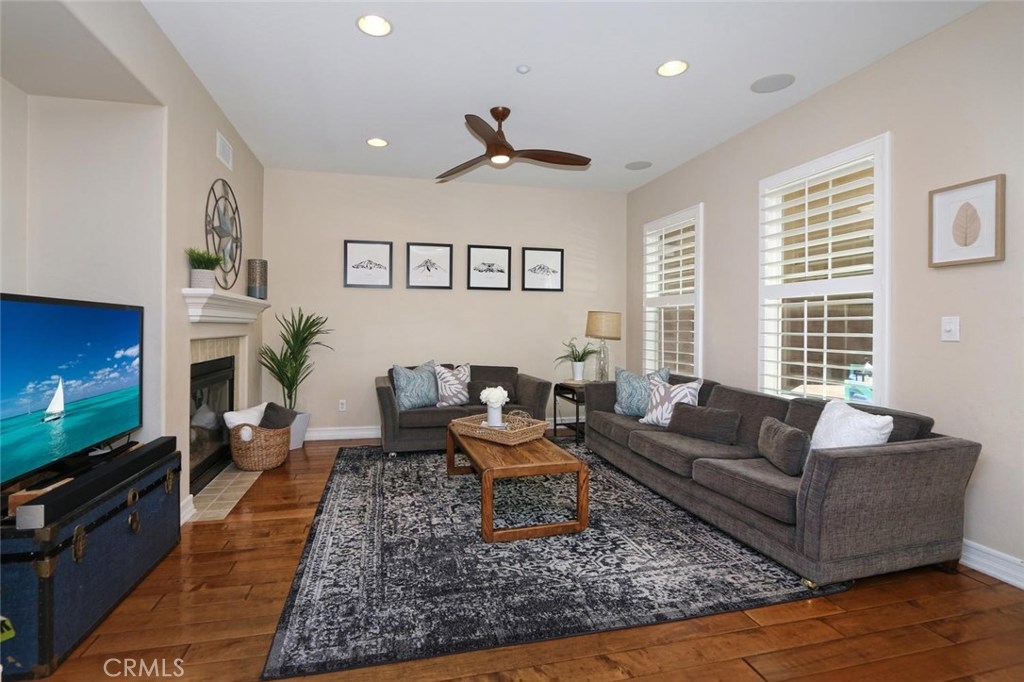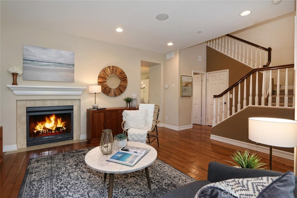 Fantastic opportunity to own this stunning, spacious townhouse! Enjoy the most desirable floor plan in the Branches boasting over 2,200 sq ft, 3BD/2.5BA+Loft. Perfect for the at home professional with a secluded, quiet loft above the master bedroom. Enter a private front porch surrounded by lush greenery into a spacious formal living room with dual sided fireplace. An entertainer's dream, open concept layout with great room, dining room and chef’s kitchen complete with large kitchen island, stainless steel appliances and 5 burner cooktop. The dining room includes generous storage with custom cabinetry and desk. Off the kitchen is a cozy private courtyard perfect for al fresco dining. Luxurious, rich hardwood flooring throughout downstairs. On the second level is a large master suite with soaring vaulted ceilings, grand windows, walk-in closet, private loft retreat, and en suite private bath with separate soaking tub and shower enclosure. Upstairs are two secondary bedrooms with jack and jill bath and laundry room complete with sink. Gorgeous plantation shutters throughout. Newly painted garage with generous overhead storage. Steps to the Ladera Ranch water park and skate park. Explore and enjoy all the resort style amenities Ladera Ranch has to offer: clubhouses, community gardens, greenbelts, plunge and wading pools, splash pads, tennis courts, hiking, biking, dog park, playgrounds, putting green, even fireworks! 3D Tour https://my.matterport.com/show/?m=1X2EweW4cks&mls=1