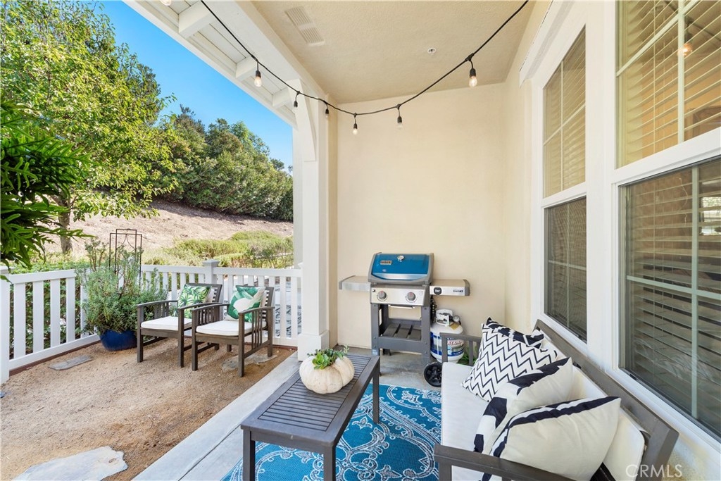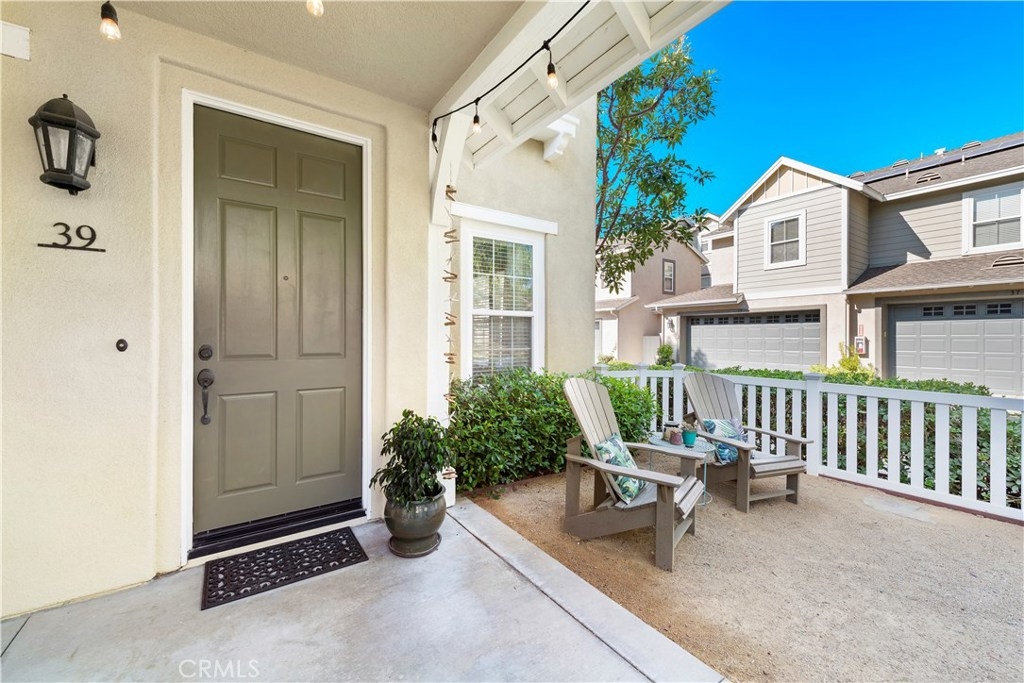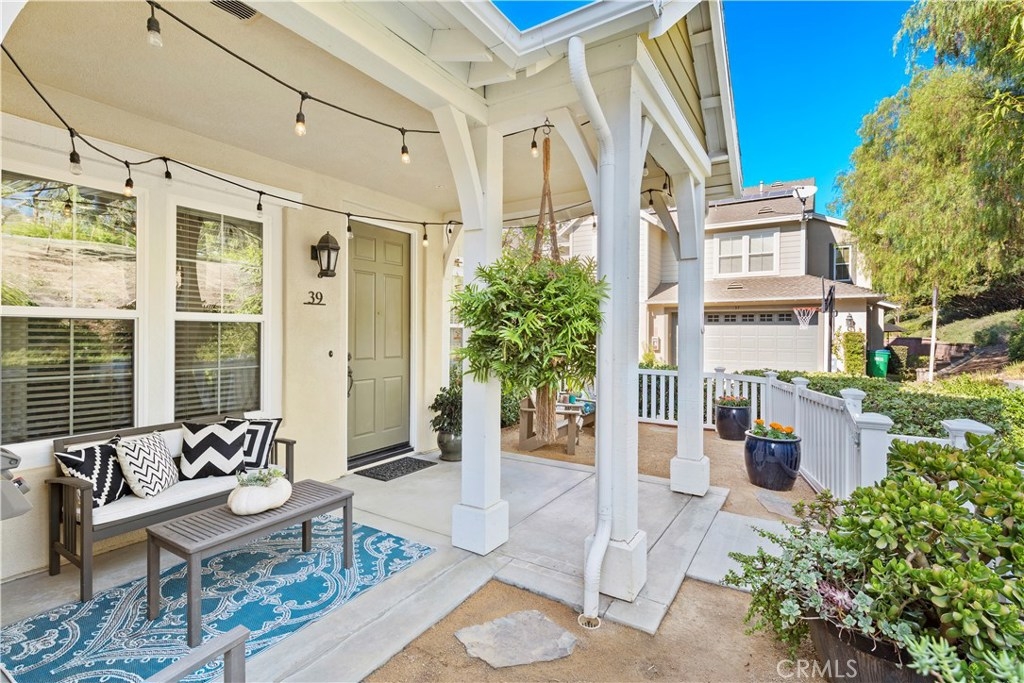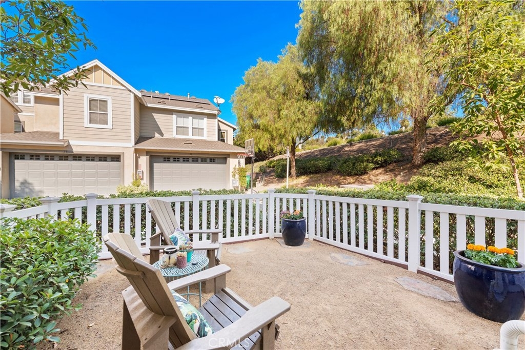 Great Location and Clean Living combine at this amazing corner lot with loads of privacy! Well positioned in the tract with serene views to the hillside, ample parking and abundant windows for maximum natural light. Fabulous plan with approx. 1700 sqft, 3 considerable bedrooms, 2.5 baths, desk niche, upstairs laundry and 2 car attached garage. Downstairs enjoy the very functional plan featuring ample living space adjacent to the open kitchen and dining area adorned with custom drapery and a cozy fireplace. Noticeable upgrades include New flooring throughout, fresh paint, custom lighting, built-ins, crown moldings and recessed lighting. Practical kitchen with granite surfaces, stainless appliances, ample counter space, plenty of room to maneuver with unblocked views to the dining area and great room. You will love your Master suite complete with a cozy sitting area, high ceilings for additional light, walk-in closet, views to the greenbelt, dual vanities and upgraded glass shower enclosure. The corner lot delivers substantial front yard space with intimate covered area, nice seating spaces all enclosed with a cute white picket fence. Don't miss this opportunity to embrace the rare Ladera Ranch lifestyle within walking distance to Amazing amenities: Big Red Bucket water park, Oso Grande Elementary, the Paseo walkway and seral parks, resort like pools and hiking trails.