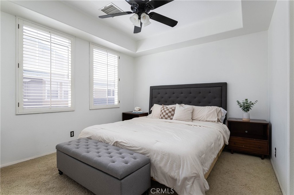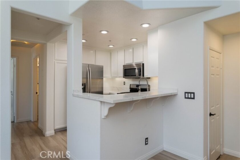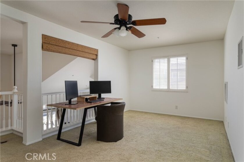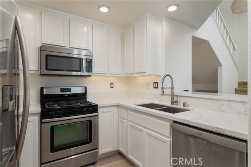 Tucked within the Chambray community of Ladera Ranch, this end-unit home stands out for its natural light, open floor plan, and thoughtful updates throughout. Soaring ceilings and expansive windows bring in light from multiple directions, giving the main living space an airy, elevated feel. The layout offers two bedrooms, two full bathrooms, and a spacious loft with a built-in custom closet - ideal for a home office, secondary living space, or easily converted into a third bedroom. The living and dining areas connect seamlessly to the kitchen, creating a layout that feels both open and comfortable for everyday living. In the kitchen, freshly painted cabinetry, new countertops, and an updated sink give the space a clean, refreshed look, while a breakfast bar offers a casual place to gather. New SPC vinyl flooring runs throughout the entry, stairway, and main living areas, complemented by fresh interior paint that carries a cohesive finish throughout the home. The primary suite is set apart as a more private retreat, featuring a walk-in closet and a remodeled en-suite bathroom with a walk-in shower, updated countertops, modern mirrors, and upgraded fixtures. The secondary bedroom is well-sized for guests or everyday use, while the loft adds an additional layer of flexibility depending on your needs. Additional features include LED lighting throughout, a direct-access one-car garage, and an assigned parking space located just steps from the home. Living in Ladera Ranch offers a lifestyle that extends well beyond the home itself, with access to pools, splash pads, parks, tennis and pickleball courts, a skate park, hiking trails, clubhouses, and more - along with nearby shopping, dining, and highly regarded schools. Don't miss out on this darling home!