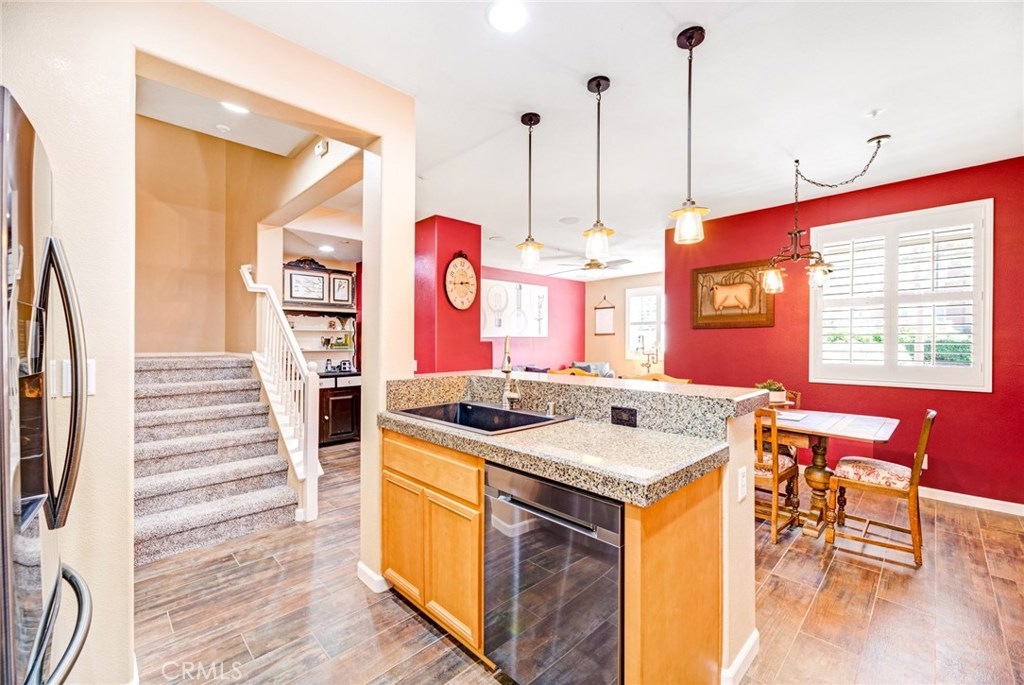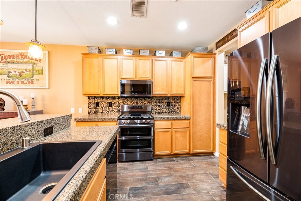 Do not miss out on an unbelievable opportunity to live in the wonderful community of Ladera Ranch. This beautiful home is move-in ready and features a lovely, remodeled kitchen with granite counters and upgraded appliances plus island seating. It opens up into a formal dining area & a spacious family room which is centered around the cozy fireplace. There is also an office niche that offers the opportunity for desk space, craft area, play room and much more! Upstairs you will find a large master suite with high ceilings and plenty of light and includes a spa-like master bathroom with dual sinks and a large walk-in closet. There are also two other over-sized bedrooms and a full bathroom. All this plus a separate laundry area and an over-sized two car garage that has been upgraded with epoxy floors and provides plenty of storage. Other lovely upgrades include beautiful wood grain tile flooring downstairs and sumptuous new carpet upstairs, plus custom paint, plantation shutters & ceiling fans. Ladera Ranch offers its residents many amenities that include multiple pools, a large water park, a skate park, tennis courts, trails, community gardens, Cox Sports park, Mission Hills putting green, four major clubhouses, BBQs, playgrounds, 2 Dog Parks, & awarding winning schools plus concerts in the park, parades, 4th of July fireworks, a spring fair, family campouts, & holiday tree lightings.