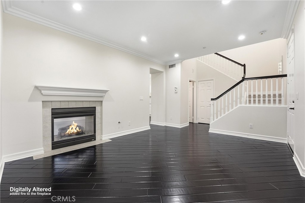 Rarely available and highly sought-after, this is the largest floor plan in the Branches community—offering exceptional space, thoughtful upgrades, and a prime location. The beautifully remodeled kitchen showcases new shaker cabinetry, quartz countertops, and designer bronze hardware, faucet, and lighting. Outfitted with upgraded stainless steel appliances, including a six-burner range, double ovens, and refrigerator, plus an oversized porcelain sink, this kitchen is both functional and stylish. Rich wood flooring spans the entire downstairs, complementing the open-concept layout that seamlessly connects the kitchen, dining, and family room—highlighted by a striking double-sided fireplace. This spacious 3-bedroom home offers a versatile primary suite complete with a private office or gym area, a large walk-in closet, and a luxurious en-suite bath featuring dual sinks, shaker cabinetry, quartz counters, and a separate tub and shower. The secondary bedrooms share a Jack-and-Jill bathroom with dual sinks and matching upgraded finishes. Plantation shutters add elegance throughout the upstairs, along with the convenience of an upstairs laundry room. Additional highlights include a welcoming living room with fireplace, a remodeled powder room downstairs, and an attached two-car garage. Enjoy outdoor living with a charming front porch and private courtyard, all surrounded by lush greenbelts, parks, and playgrounds. Ideally situated within the community, residents also enjoy access to a water park and dog park—offering a vibrant lifestyle with something for everyone.