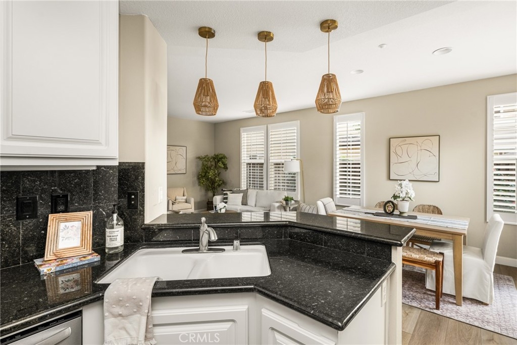 Welcome to 5 Lansdale Court in the charming Sycamore Grove enclave of Ladera Ranch, where everyday living feels connected, active, and community centered. Tucked into a prime interior location on a cobblestone cul de sac, this French inspired residence offers a bright and inviting layout designed for both gathering and quiet moments. The open concept main level creates easy flow between living, dining, and kitchen spaces, making it ideal for entertaining friends or enjoying relaxed evenings at home. The kitchen features granite countertops, stainless steel appliances, including built-in microwave and an all white design that feels fresh and timeless. A mixture of plantation shutters and wood blinds throughout adds both style and privacy. Upstairs, all three bedrooms provide comfort and separation, along with a versatile loft featuring a built in desk area, perfect for working from home, homework sessions, or a creative retreat. The spacious and light filled primary suite offers a peaceful retreat, and the primary bathroom features dual vanities with granite countertops and a tub with shower. Natural light enhances the home’s warm and welcoming feel throughout. The direct access two car tandem garage includes a finished grind and seal floor for a clean, polished look. Step outside to the low maintenance wraparound yard, offering a peaceful setting for morning coffee, weekend barbecues, or simply unwinding at the end of the day. Living in Sycamore Grove means enjoying a private community pool and spa, playground, and picnic areas, along with full access to Ladera Ranch’s renowned amenities. Nearby Oak Knoll Clubhouse offers pools, gathering spaces, and outdoor lounging areas, while Cox Sports Park just across the street features sports fields, open green space, and community gardens. With miles of trails, community events, award winning schools, shopping, dining, and convenient freeway access nearby, this home offers an exceptional opportunity to enjoy the Ladera Ranch lifestyle.