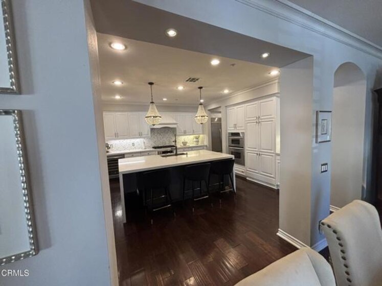 Through the exclusive gates of Covenant Hills, at the end of a quiet cul-de-sac, sits this gorgeous south-facing Castellina Plan 5 townhome offering the perfect blend of luxury, comfort, and indoor-outdoor living. This location is optimum!The newly upgraded kitchen is a showstopper, featuring stunning quartz countertops and an oversized 8' x 5' waterfall island, large walk-in pantry, wine cooler, double ovens, microwave, dishwasher, and an oversized built-in refrigerator. The kitchen also provides direct access to the two-car garage for ultimate convenience.The main level showcases a beautiful open floor plan with hardwood floors throughout, seamlessly connecting the living room, dining room, kitchen, and family room to create an expansive great-room feel. Four sets of French doors open to the backyard, enhancing the home's effortless indoor/outdoor lifestyle.The private backyard sits on an oversized corner lot and features stamped and color-stained concrete, a covered patio, custom fireplace, and a built-in BBQ complete with stone countertops, sink, and refrigerator -- ideal for entertaining.The spacious primary suite offers two separate walk-in closets with custom built-ins, a private balcony, and an oversized spa-style bath with dual separate vanities and a large walk-in shower. A downstairs bedroom with adjacent full bath provides flexibility for guests or multi-generational living, while two additional upstairs bedrooms share a full bath. Each bedroom includes plantation shutters, ceiling fans, and new wood flooring.Located within the 24-hour guard-gated enclave of Covenant Hills, just a block from the resort-style Covenant pool, tennis and pickleball courts, and newly remodeled clubhouse and a block below one the inviting parks , this beautifully detailed home offers exceptional lifestyle living in one of Ladera Ranch's most desirable communities.