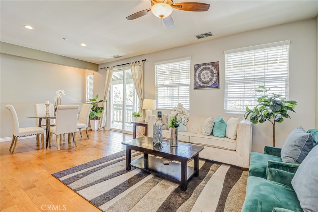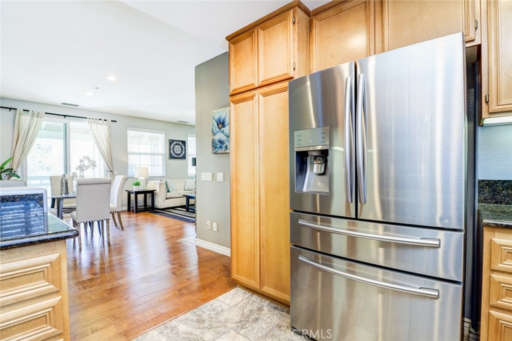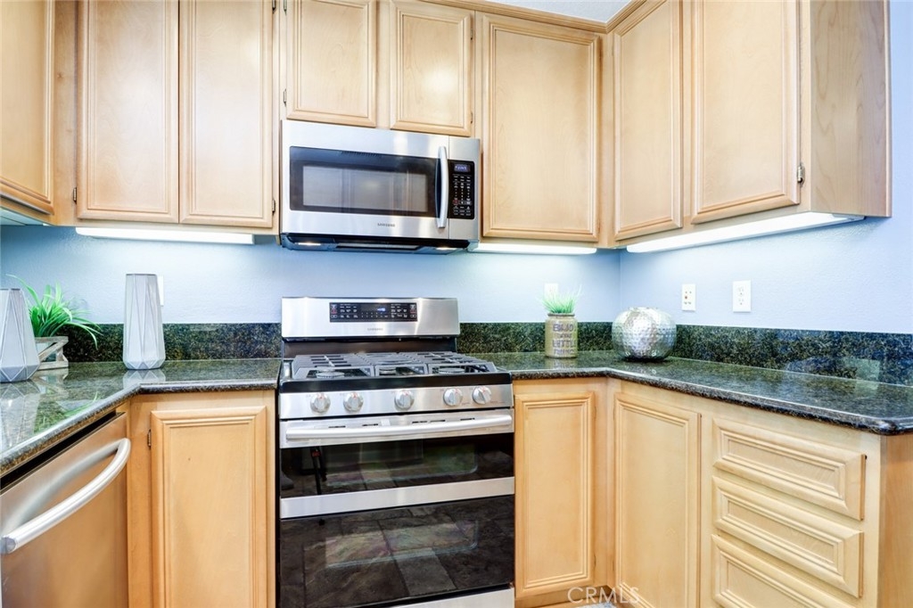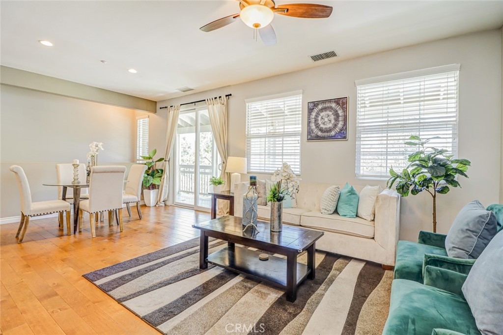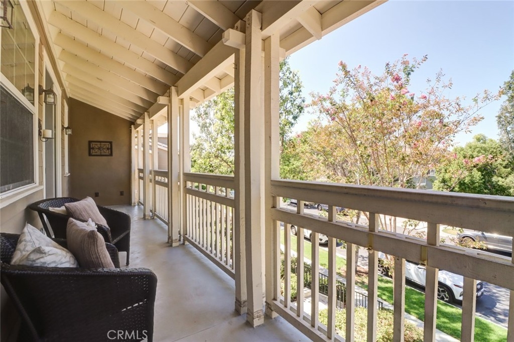 This stunning home is located in the highly sought-after Berkshire community in the heart of Ladera Ranch, featuring a unique single-level design with all living areas on the upper floor. For added privacy, there is no one living above or below the unit. Elegantly upgraded, the home offers 2 bedrooms, 2 bathrooms, 2 car attached garage, a large private balcony, and scenic views of the park and neighborhood. The open-concept living and dining areas seamlessly connect to the upgraded kitchen, which boasts granite countertops, travertine flooring, and stainless steel appliances. The inviting living room features a stacked-stone fireplace with a custom mantle, leading to a spacious balcony—ideal for entertaining or enjoying tranquil park views. The primary suite includes a walk-in closet, dual vanities, and an oval bathtub, while the secondary bedroom comes with mirrored closet doors. Additional highlights include upgraded wood flooring throughout the stairs, dining area, living room, bedrooms, and hallway, as well as travertine flooring in the entry, kitchen, and bathrooms. Custom paint, upgraded baseboards, ceiling fans, and a full-size washer and dryer set further enhance the home’s appeal. Extra storage is available in the hallway near the bedrooms, and the attached garage offers both convenience and ample storage, with street parking directly in front of the property. The Berkshire community offers a private pool and spa just a 2-minute walk away and is centrally located near amenities such as pools, parks, clubhouses, tennis and basketball courts, a dog park, and trails for walking, biking, and hiking. Additionally, the home is close to top-rated schools, a library, a skate park, the clubhouse, and Founders Park, which hosts weekly Sunday Farmers Markets and Fourth of July Fireworks & Festivals. The HOA includes free Cox high-speed internet and trash services. Refrigerator, washer, and dryer are included.Don’t miss out on this incredible opportunity. It won’t last long!