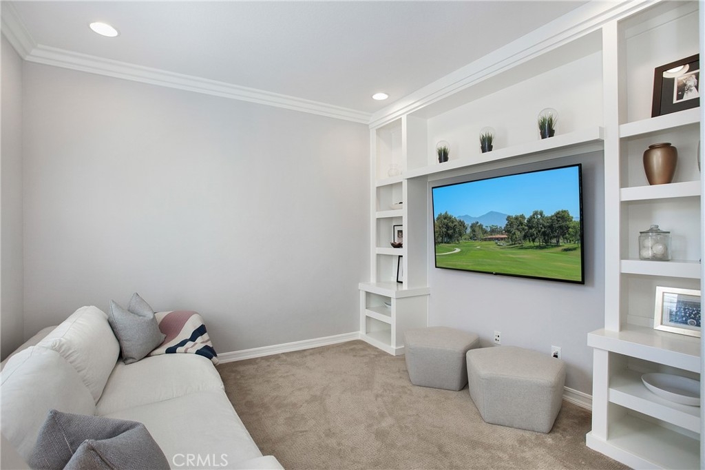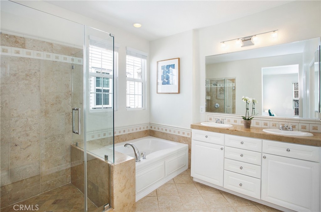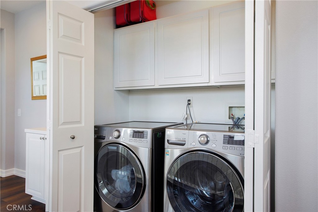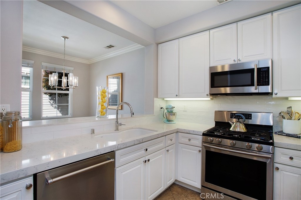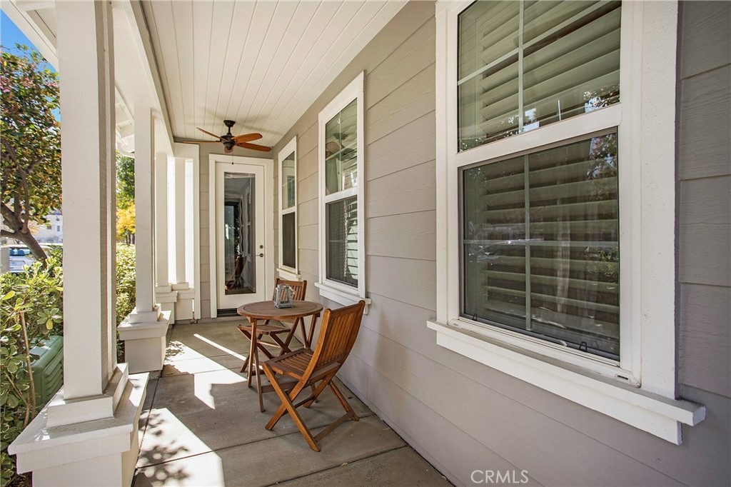 Welcome home to this beautiful two-story home nestled in an amazing community in Ladera Ranch! Enjoy this three bedroom, three bath home with an open flowing floor plan. The curb appeal is inviting with a beautiful front walkway/porch with a seating area and new fans. As you enter, find a sizable front den with built in shelves/media center. The entry way opens to a large family room/spacious dining area that are perfect for hosting family dinners or entertaining friends. These rooms boast tile flooring and gas fireplace. Spill out from the dining area to the beautiful, remodeled kitchen. The kitchen features plenty of counter space, stainless steel dishwasher, microwave and oven, along with custom cabinetry and luxury quartz counters. Up the staircase, find two additional bedrooms. These bedrooms include plush carpet, ceiling fans and a connected bathroom. The bathroom has a large vanity with shower/tub combo as well. Down the hallway, the master suite is oversized with dual walk in closets/plenty of extra space. The bedroom opens to the master bathroom featuring dual vanity with tub and shower. The backyard features lush turf and landscaping with an attached patio. Other features include new exterior paint, new paint throughout the interior, new hardwood flooring, 2 car garage and plenty of storage space throughout the home. Come explore everything this Ladera Ranch community has to offer including numerous parks, community pools and award winning schools.