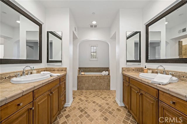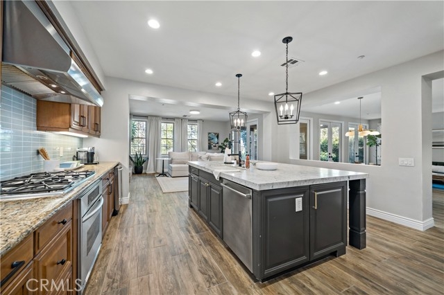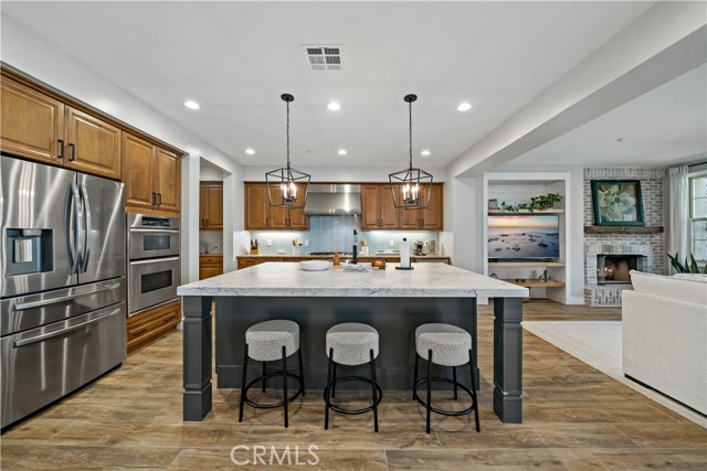 Welcome to this beautifully upgraded 4 bedroom, 3 bathroom residence offering approx 2,550+ sq. ft. of thoughtfully designed living space, located on a quiet cul-de-sac within the prestigious guard-gated community of Covenant Hills. Step inside to an open-concept floor plan that flows seamlessly from the formal living and dining room into the spacious kitchen and family room. The family room is highlighted by a custom limewash brick fireplace and a built-in shiplap entertainment center. The chef’s kitchen is a true showpiece with stainless steel appliances including a double-door refrigerator, built-in oven with separate range top, secondary oven, microwave, dishwasher, and wine cooler. The centerpiece is a massive Carrara marble slab island (67” x 92”) with an undermount single-basin sink, accompanied by granite countertops, and a custom-built walk-in pantry. This home offers flexibility with a main-level bedroom and full bath, perfect for guests or multi-generational living. One of the many countless upgrades includes premium porcelain tile and new baseboards throughout the main level. Upstairs you will find 2 generously sized secondary bedrooms that feature elegant trim details, while the massive primary suite enjoys tranquil canyon views, a private balcony, and two walk in closets. The master bathroom features a "his and hers" sink, walk in shower, and oversized bath tub. Enjoy privacy with no backyard neighbors and take in the beauty of the canyon from your outdoor living space. As part of the Covenant Hills lifestyle, you’ll enjoy access to multiple resort-style pools, hot tubs, clubhouses, tennis courts, parks, hiking trails, frisbee golf, splash pads, a 9-hole mini golf course, and even a skate park. Top-rated schools are just a short walk away. This is a rare opportunity to own a highly upgraded home in one of South Orange County’s most coveted communities!