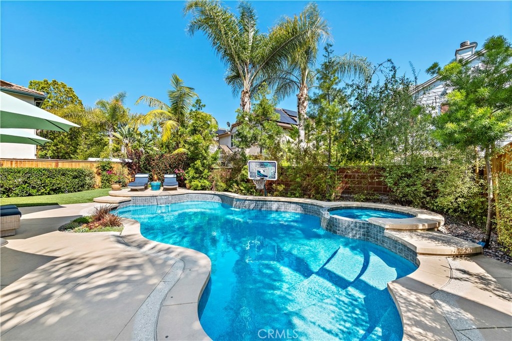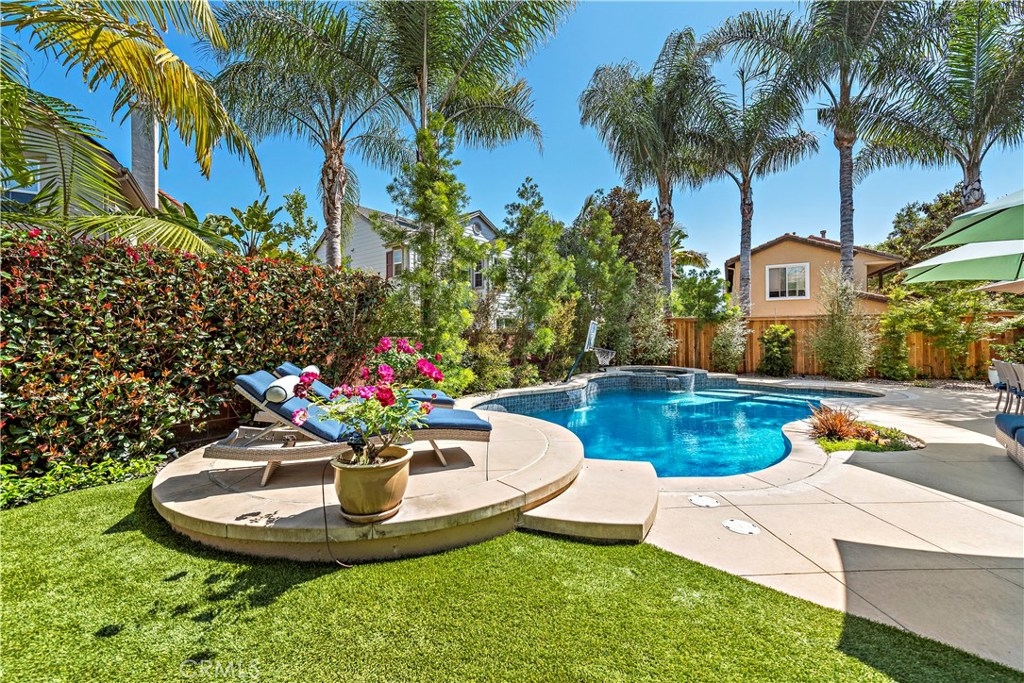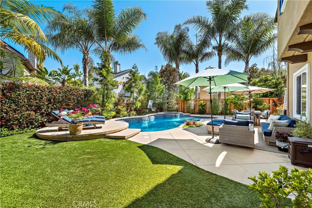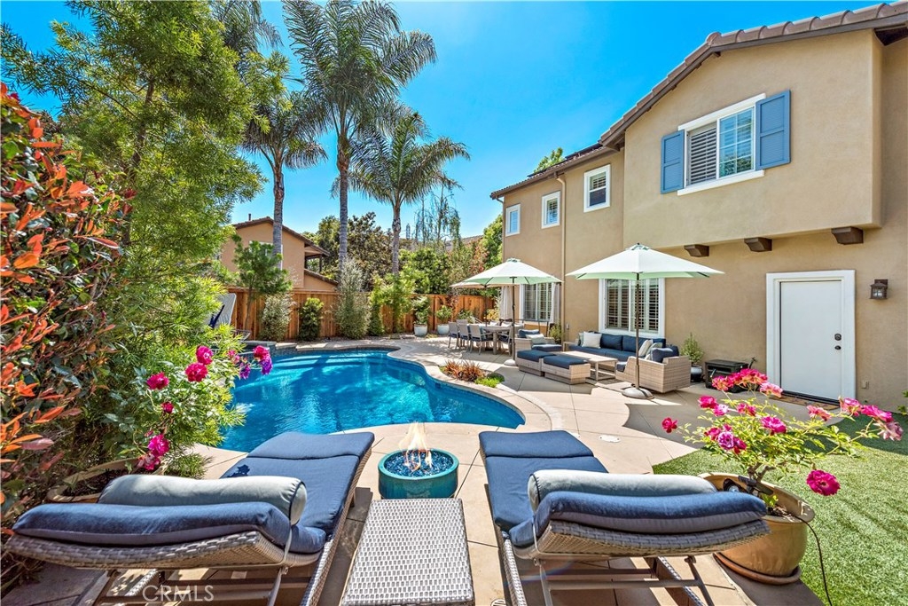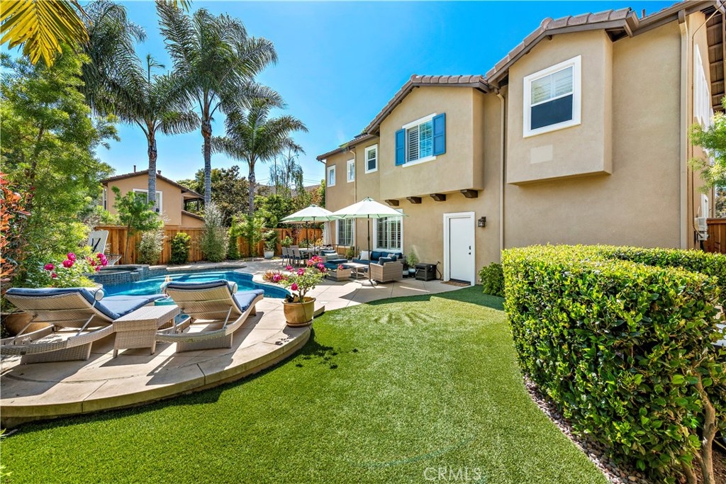 Gracing an active and family friendly locale in the heart of Ladera Ranch, this exceptional Potters Bend home elevates modern living to impressive new heights. Completely Re-Piped with PEX and with OWNED Solar for zero electric bill, this 3BD 2.5BA POOL home showcases sophisticated and forward thinking design. A warm juxtaposition of warm woods and modern materials are featured throughout the home. On the main level, an impeccable kitchen showcases white quartz counters, designer backsplash, and new single basin sink. Sliding doors invite you to an entertainers backyard on a DOUBLE LOT complete with professional hardscape, salt water pool and spa, and synthetic grass for minimalistic design and open to sunset views. Gracing the second floor, a sweeping staircase brings you to 3 spacious bedrooms and a light and bright tech area. Also featured is NEW exterior and interior paint, PEX re-piping, plantation shutters throughout, a cozy fireplace, epoxy garage flooring, engineered hardwood floors, NEW frameless glass master bath shower door, LED lighting throughout, a whole house water filter and water softener system. Walking distance to California distinguished Ladera Ranch Elementary and Middle Schools, Avendale Clubhouse, Library, Dog Park and infamous Founders Park where the hub of Ladera sports and events happen, this home is a must see! HOA includes 24 hour security and COX high speed internet! Plz see 3D tour: https://my.matterport.com/show/?m=WnukmXMyvqu&brand=0