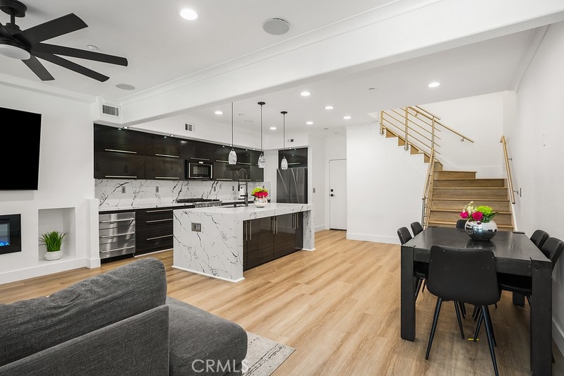 Welcome to 7 Rumford, Ladera Ranch in the community of Davenport. This meticulously remodeled townhome boasts 3 bedrooms, 2.5 bathrooms, and a wealth of upscale features for contemporary living. Inside, you will discover an open-concept floor plan that effortlessly combines style and functionality. The heart of the home is the stunning island kitchen, featuring quartz countertops with waterfall edges, and high-end appliances. Gas stove, snack refrigerator, custom appliance pull-up cabinets and more. Whether you're enjoying a quiet evening in front of the custom fireplace or cheering your favorite team with friends this layout is sure to work perfectly. Upstairs, the luxurious primary suite has a retreat and a private balcony, perfect for morning coffee or unwinding with a glass of wine in the evening. The spa-like bathroom is a true sanctuary, offering dual sinks, a separate shower, and a sumptuous tub, the ultimate in relaxation. Additional highlights of this residence include customized bathrooms, convenient upstairs laundry and the home has been re-piped with PEX. Recessed lighting throughout keep things bright. A spacious 2-car garage with tons of built-in cabinets and a workbench, providing ample storage and workspace for all your needs. Electric car charger & spacious driveway, a charming front porch welcomes you home. Ladera Ranch and the area have many amenities such as parks, 14 pools, child play structures, hiking and biking trails, the skate park, the water park, tennis and pickleball courts, award winning schools, a library, many community and seasonal events and nearby shopping outlets ensure there’s always something to do. The HOA also reduced Cox high speed internet. With easy commuter access and a prime location, this remodeled home offers the perfect blend of luxury, convenience, and sophistication. Buyer to pay one time Ladera Ranch Community Enhancement Fee MUST be write into the RPA (1/4 of 1% of purchase price).