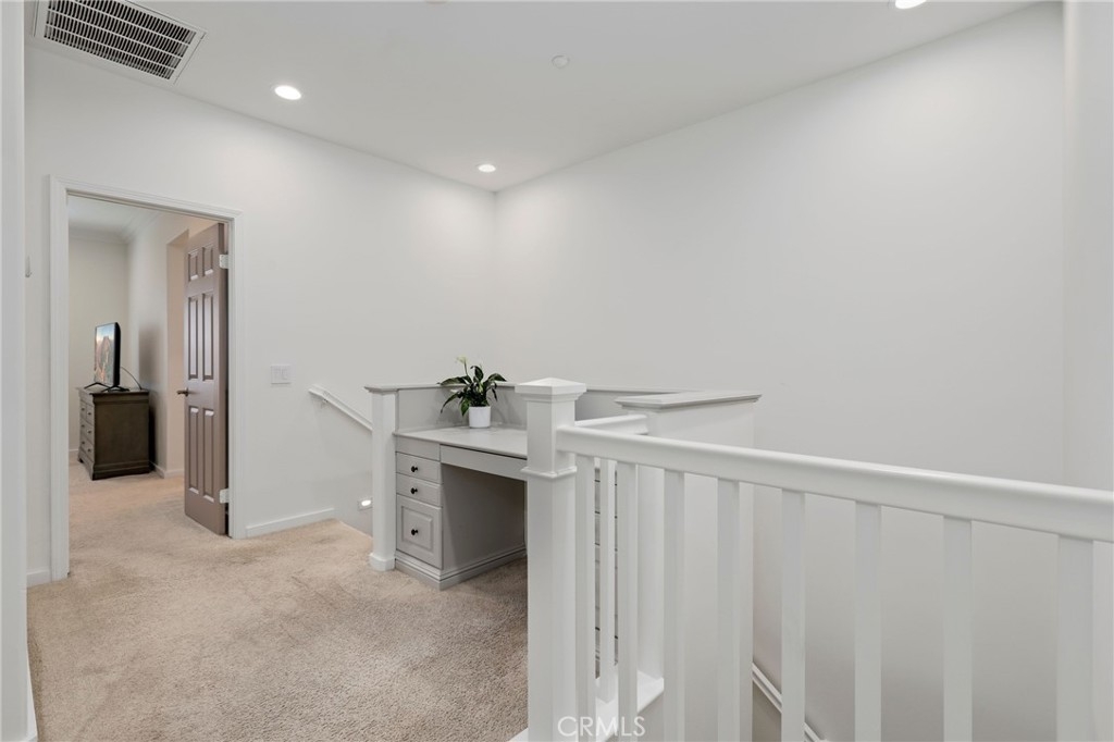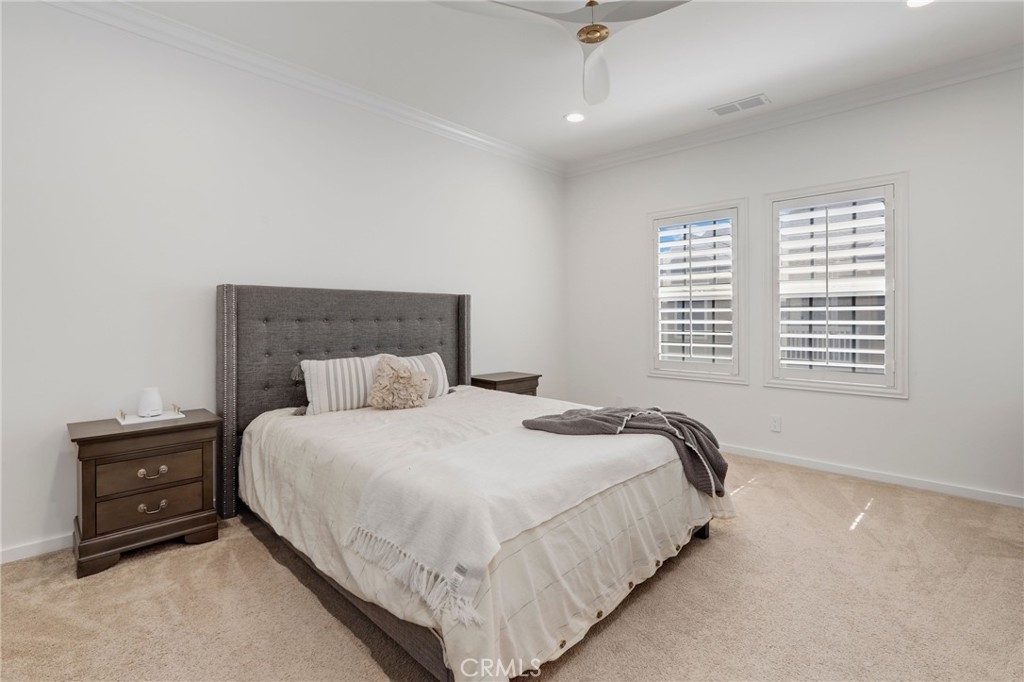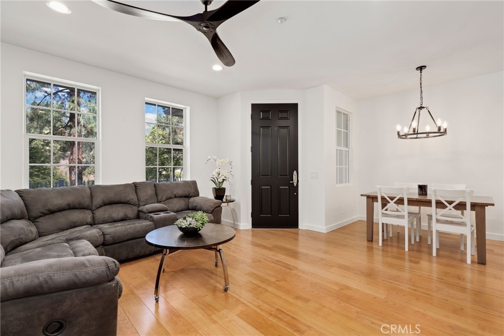 Welcome to 77 Strawflower Street located in the Charleston Place neighborhood of Ladera Ranch. This charming home offers warm laminate wood floors, fresh neutral paint, and recessed lighting, creating a welcoming atmosphere. The kitchen features granite counters and fresh white cabinets. The living room boasts a cozy fireplace and opens up to the dining room, creating a seamless flow for entertaining guests. On the first level, you'll find direct access to the two-car garage, making parking convenient, an extra-large storage closet under the staircase, as well as a powder room for added convenience. Upstairs, there is a desk area and a full-size laundry room, offering practicality and ease of use. The primary bedroom includes a full bathroom with dual sinks, providing ample space and functionality. Additionally, there is a second primary suite with an en-suite full bathroom, perfect for guests or family members. One of the highlights of this property is the spacious and private front patio, where you can relax and enjoy the outdoors. Enjoy access to the resort-like amenities of Ladera Ranch, including high-speed internet, 15 pools, splash parks, a skate park, a community garden, clubhouses, and hiking and biking trails. The community also hosts various events and activities throughout the year, such as concerts in the park, parades, 4th of July fireworks, a spring fair, family campout, holiday tree lightings, and a secure dog park.