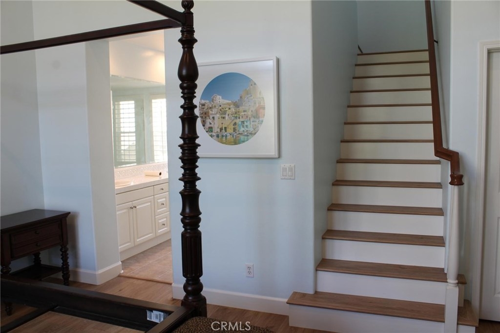 This is a great opportunity to own a beautiful townhome in the Branches Community of Ladera Ranch. This large townhome boasts 2,213 square feet of living space and has a terrific floor plan with a vaulted cathedral master bedroom, 2 additional bedrooms, 2.5 baths, private loft, upstairs laundry room and a 2 car attached garage with storage. The entire home has also been re-piped with PEX water lines throughout! The downstairs offers a functional floor plan with an open living space adjacent to an open kitchen, dining area, a living room with a cozy fireplace and luxury vinyl plank (waterproof) flooring throughout. A 5.1 surround sound theater system can be enjoyed in the family room along with ceiling speakers throughout the entire home. 4 inch wood shutters for all windows also provides privacy and an elegant upgrade for the pickiest buyers. The kitchen offers plenty of storage space with white cabinetry along with granite surfaces, stainless appliances, ample counter space, and plenty of room to move about. The oversized master suite offers a private loft, walk in closet, dual vanities and a luxurious bathroom complete with a soaking tub and separate shower. There is also a Jack and Jill bathroom separating the two remaining bedrooms providing for easy access. Amenities include within walking distance: Big Red Bucket water park, clubhouse pools, the Ladera Greenbelt, and Oso Grande Elementary. Also enjoy parks, walking trails, tennis courts, and biking trails.