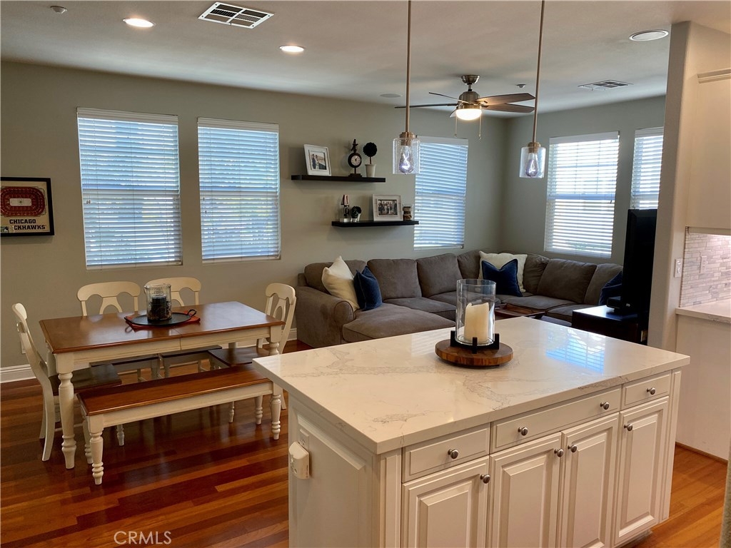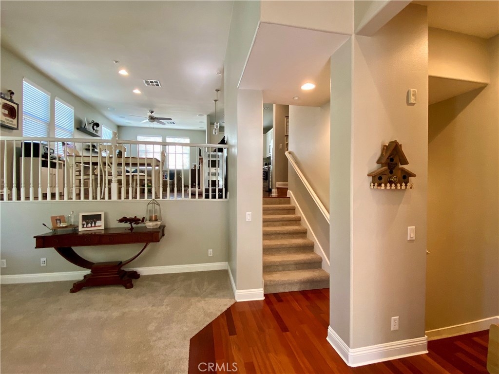 LOOK*****A 2 Car attached Garage with additional storage and a full 2 Car Driveway- a rarity in some parts of Ladera Ranch! The home is located in the highly desirable Briar Rose community. This is an upgraded end unit home with a wrap around covered porch. The living room with high ceilings has a beautiful fireplace and stainmaster lifetime warranty carpet. Adjacent is the guest half bath and stairs leading down to the garage. The kitchen has been remodeled(2018) with quartz countertops, backsplash and stainless steel appliances. There is a large family/great room with the dining area across from the kitchen all set on gorgeous hard wood flooring. Upstairs is the Master bedroom with a custom Master bathroom, Secondary Bathroom and Laundry room! The 2 secondary rooms are located on the opposite side of the hall for ultimate privacy! All completed in 2019. New paint, carpet, baseboards, stair molding, ceiling fans, crown molding and door casings. Ladera Ranch has many amenities including pools, water park, skate park, grassy parks with playgrounds, dog parks, clubhouses, and many events throughout the year! The school district is fantastic with award winning schools and is close to entertainment, restaurants, shopping.