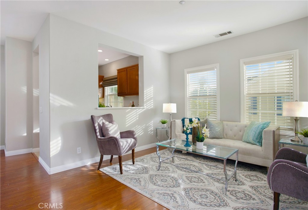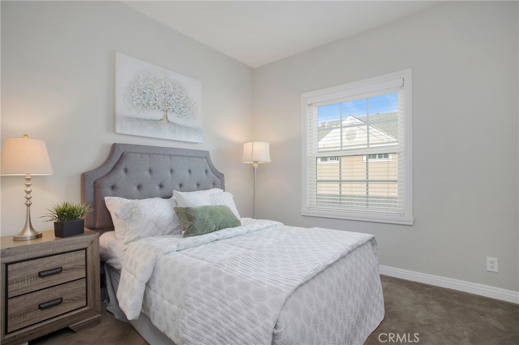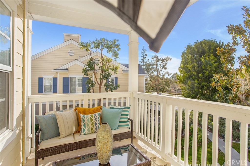 Welcome home to 83 Strawflower situated in the Charleston Place neighborhood of Ladera Ranch. Its corner lot location showcases the beautiful front yard with a custom flagstone patio surrounded by flowers and a white picket fence. This home features two bedroom and two full bathrooms. The open floor plan has recessed lighting, wood laminate flooring, and an abundance of windows creating loads of natural light. The living room and dining room each have their own private patios. The kitchen has Caesarstone counters, stainless steel appliances, and plenty of cabinet and counter space. Down the hallway, is the oversized master suite with its own private bath. This private bath offers a large dual vanity and a bathtub/shower combination. The secondary bedroom has its own full bathroom across the hall. Other features include an attached two car garage with direct access, a 65" Sony TV mounted in the living room, a laundry room with new (2023) washer and dryer, a new HVAC system (2023), and new vinyl windows in the bedrooms. Enjoy the Charleston Place community's pool, spa, and playground just steps from your front door. Ladera Ranch offers the best of everything with its incredible amenities including multiple clubhouses, pools, spas, playgrounds, waterpark, skatepark, sports courts, hiking and biking trails, and top-notch schools. This one is a winner!