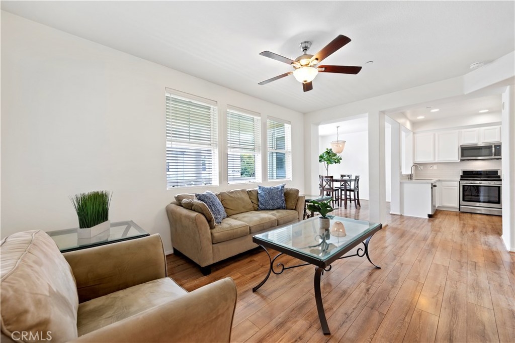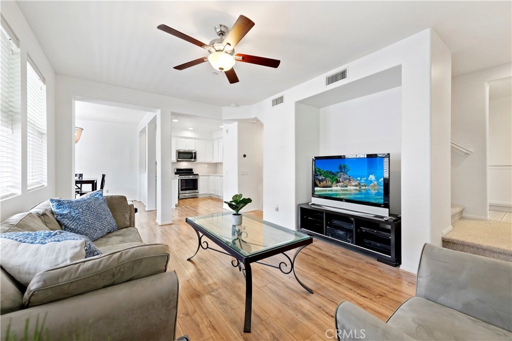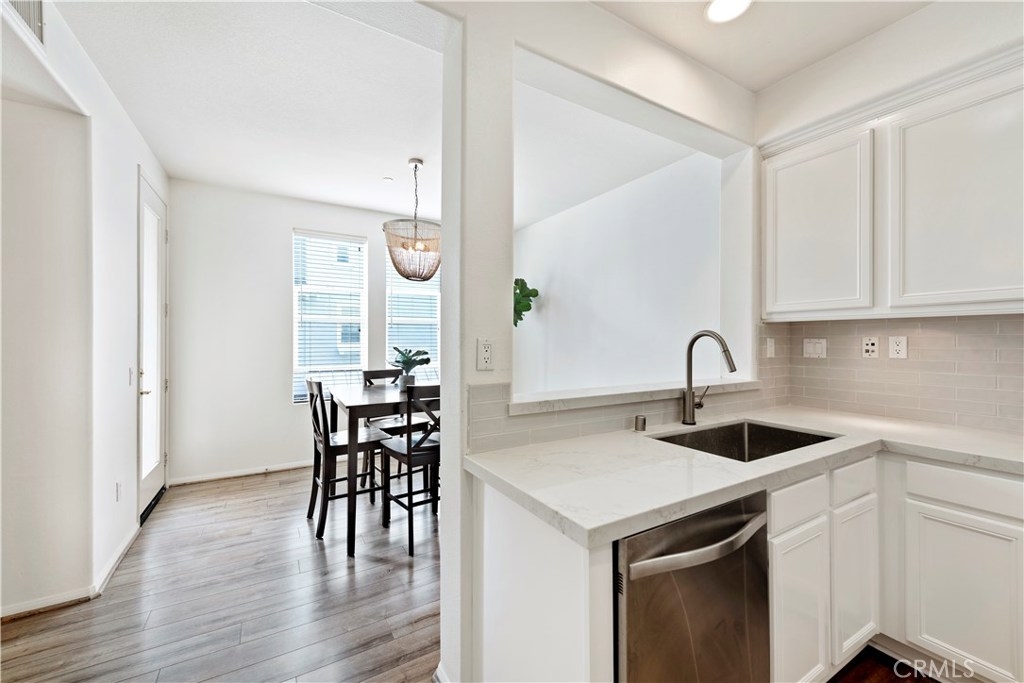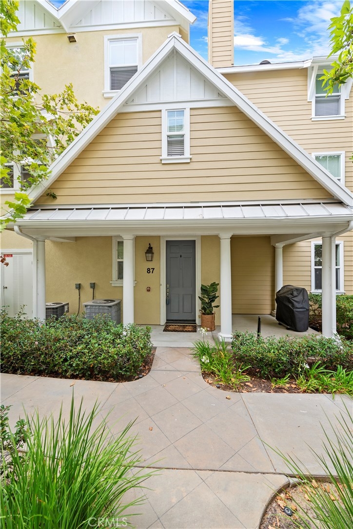 Welcome Home to this beautifully re-designed 2 bed/2.5 bath, 1259sqft corner townhome! Enter a private front door to a Vintage tiled entrance and walk upstairs to the main floor great room where you will be greeted by NEW and RENOVATED KITCHEN complete with Quartz countertops, designer back splash, a NEW stainless big basin sink and smart faucet! NEW designer lighting and contemporary laminate flooring along with a NEWLY tiled powder room also complete the 2nd floor great room. Enjoy an evening by the fireplace or beautiful neighborhood views from the generous sized balcony! On the 3rd level you will find dual ensuite master bedrooms and a conveniently located washer/dryer. This unit has a single car garage with a reserved parking space. This popular Valmont Community is conveniently located in award winning Terramor Village at the top of the infamous Ladera Ranch Paseo where all the fun is walkable. The paseo conveniently connects to the Ladera Ranch Water Park and Skate Park, toddler parks and Exploration Rock Wall park, the community garden, popular clubhouses and pools, Top Ten Rated Oso Grande Elementary School, a private preschool, and much more. HOA includes FREE high speed internet and 24 hour security!