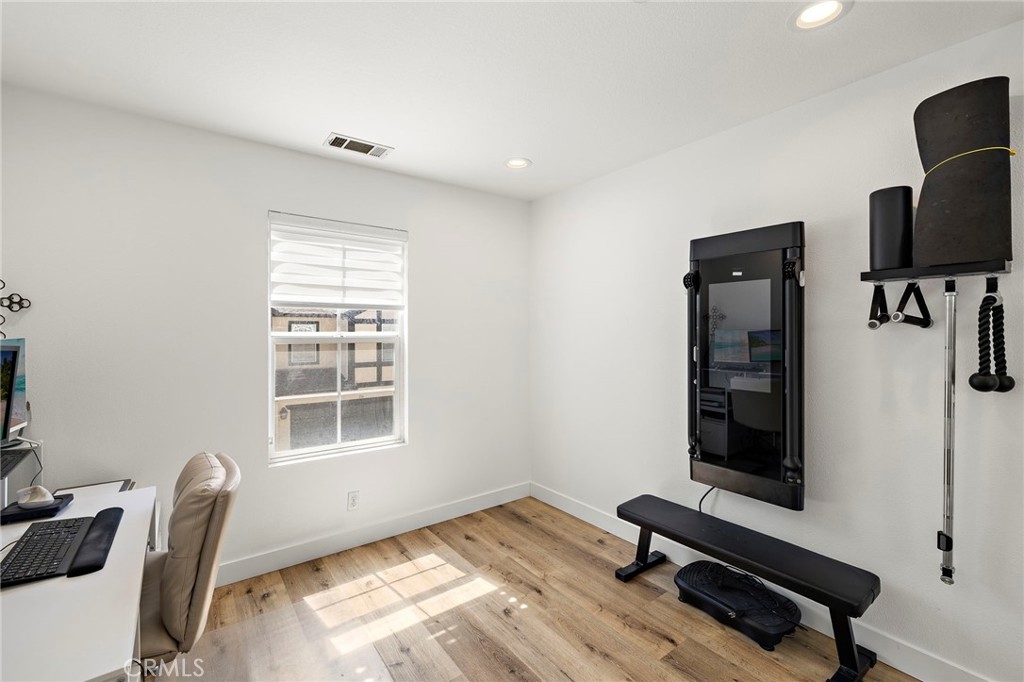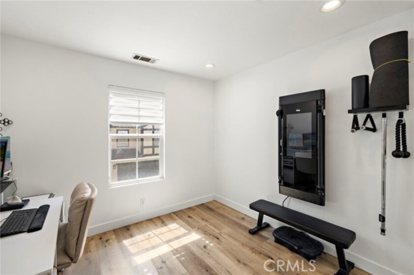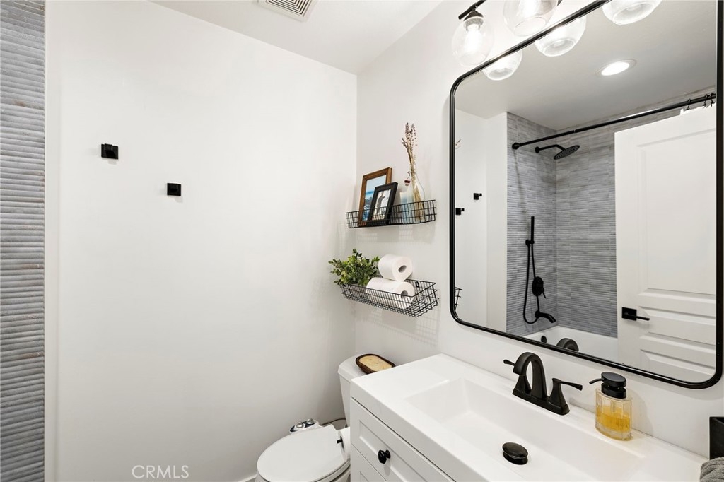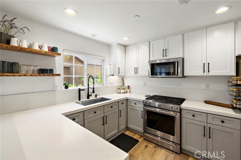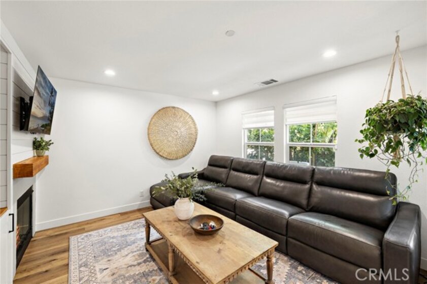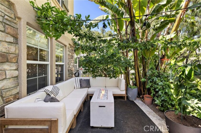 Set on a desirable corner lot in one of Ladera Ranch’s most charming neighborhoods, this beautifully upgraded townhome offers exceptional privacy, abundant natural light, and thoughtfully refined living. A private courtyard entry creates a warm and inviting first impression. Inside, the kitchen has been tastefully redesigned with refaced shaker cabinetry, honed quartz countertops, a deep stainless sink, and a dedicated reverse osmosis water system. The open-concept living and dining areas feel bright and elevated, featuring LVP flooring, recessed lighting on dimmers, and remote-controlled blinds for added comfort and convenience. The primary suite serves as a peaceful retreat, highlighted by a custom closet and a striking Venetian plaster accent wall that adds warmth and texture. Secondary spaces are equally well-appointed, including a refreshed guest bath with an enhanced shower and a versatile third bedroom ideal for a home office or guest accommodations. Major system upgrades provide peace of mind, including a newer AC and furnace (2021), whole-house fan, tankless water heater, whole-house filtration system, and water softener—delivering both efficiency and everyday comfort. The two-car garage is optimized with a side-mounted opener for additional storage, and the full two-car driveway—rare for townhomes in Ladera Ranch—adds valuable convenience. Outdoors, the private yard is both tranquil and productive, showcasing mature banana trees, a flourishing passion fruit vine, and a prolific lime tree. Residents enjoy access to resort-style amenities including several pools, spa, pickleball and tennis courts, water park, skate park—bringing the best of community living right to your doorstep